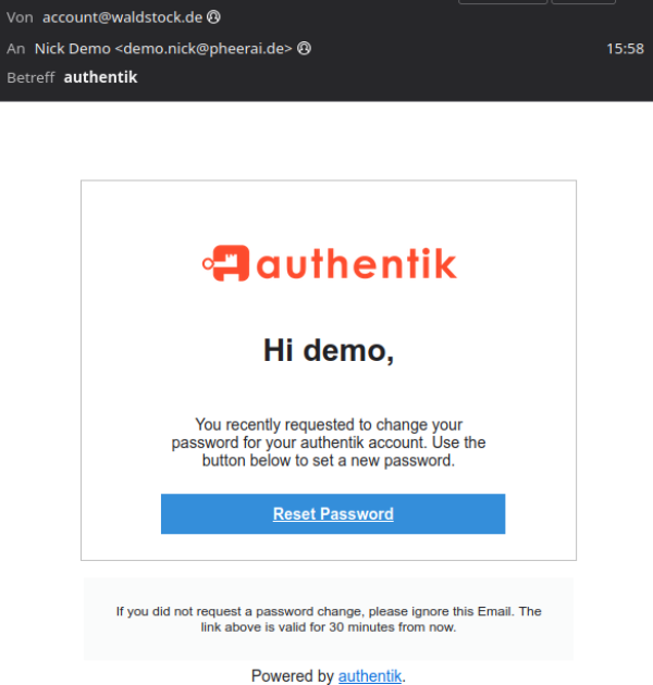 - und seine E-Mail-Adresse ist „demo.nick@pheerai.de“ (einfach, weil wir eine funktionierende Mail brauchen)